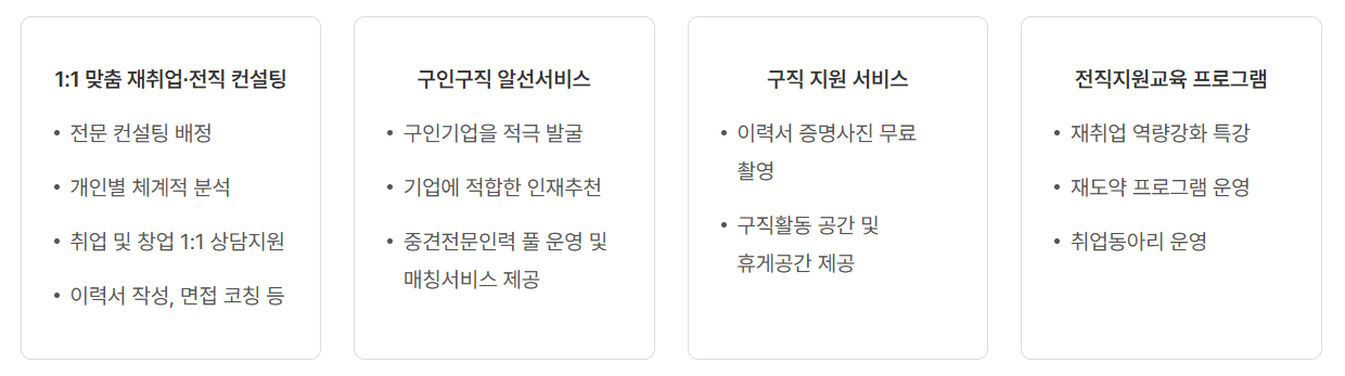 이 서비스는 40세 이상의 중장년이라면 누구나 6개월 간 무료로 서비스를 제공받으실 수 있으니 취업에 관심 있으신 분들은 아래 내용을 참고하시면 좋습니다.